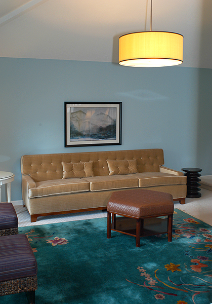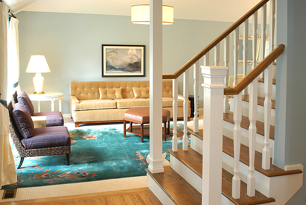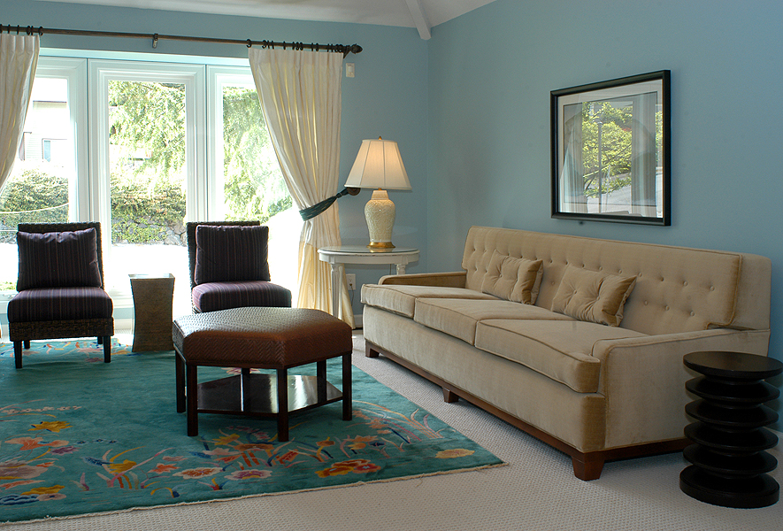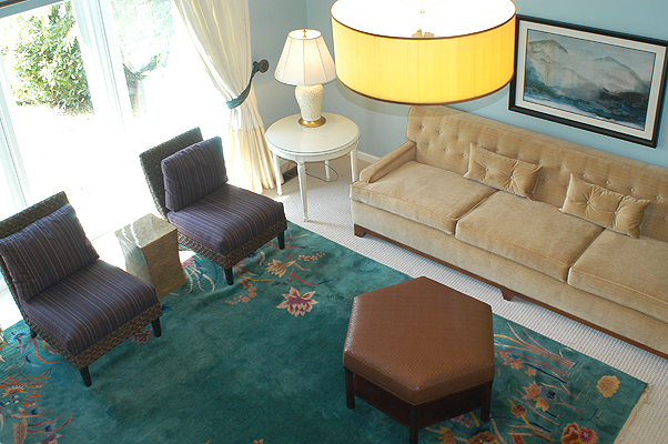 The existing Chinese antique area rug is a favorite of the client and our task was to bring in furnishings and colors to compliment the piece.