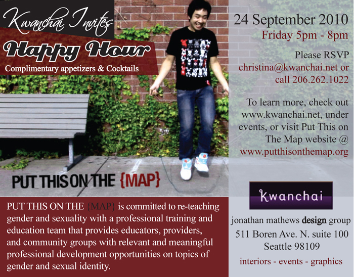 To Our Invited Guests & Friends: Kwanchai is pleased to host August's Happy Hour in support of Put this On The Map. It brings us great joy & pleasure to meet new people in our community!
